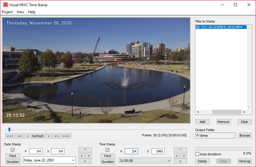 - Preview stamped video, accurate to pixel. The effect of any change to the stamp options can be viewed instantly, before actual stamp process starts.